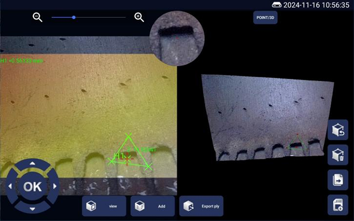 2、精准三维测量功能——生成3d点云图、深度图、剖面图等重现被测物体外貌轮廓,其中三维立体点云图可缩放、旋转等,实时验证选点准确性,避免选点错误导致的测量结果失准。