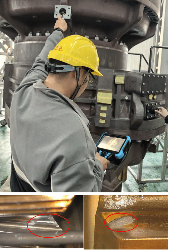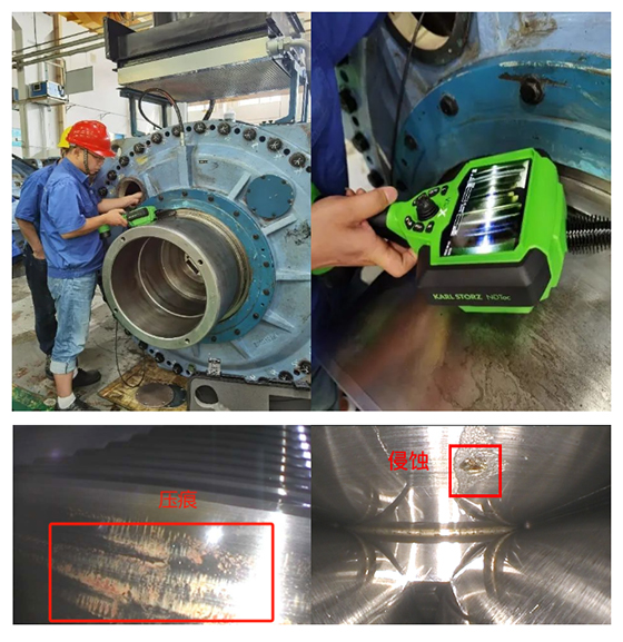 案例3:国内某知名生产高、低速重载齿轮箱为主的企业使用亚泰zie620内窥镜对风电齿轮箱出厂前星轮、太阳轮等的检查,保证出厂质量100%合格交付到工程单位。