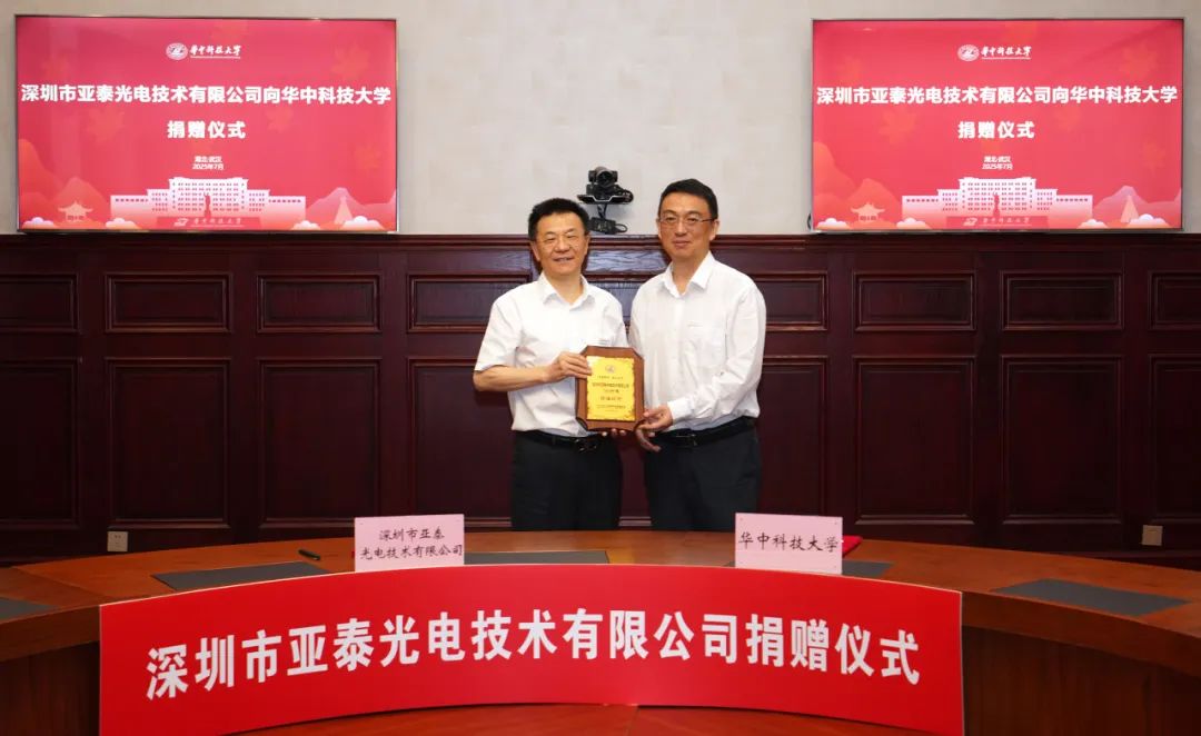 2025年7月17日,在华中科技大学梧桐语论道厅内,一场意义非凡的校企合作拉开了帷幕。作为国家级专精特新“小巨人”企业,深圳市亚泰光电技术有限公司向其母校——华中科技大学慷慨捐赠了100万元人民币设立“亚泰光电奖教奖学金”,旨在支持教育事业的发展,推动科技人才的培养。此次捐赠不仅是对母校深厚情感的体现,更是未来校企合作迈向新高度的重要里程碑。