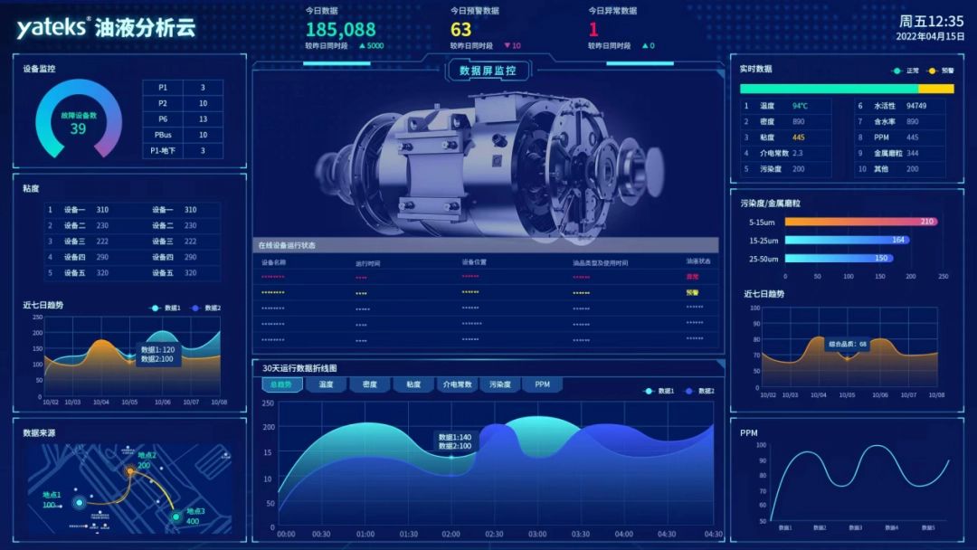 智能预警与诊断:基于实时数据和内置智能算法,系统能在油液性能劣化或污染物超标的第一时间发出分级(预警、报警)警报,并结合多参数趋势分析,为维护团队提供初步的故障诊断线索,变被动抢修为主动干预。
